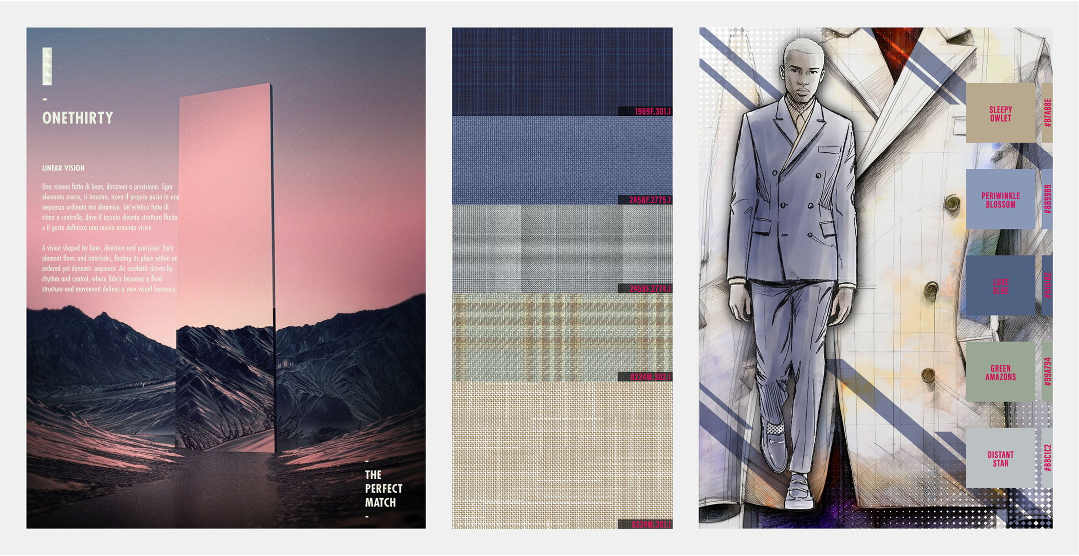 For the contemporary man, dynamic and always on the move, a look that stays perfectly fit from morning to evening is as important as wearing exclusive garments. The precious OneThirty fabrics join both requirements with style and elegance, with attention to details. This refined finish, combined with the quality of raw material, created the perfect fabric for the everyday life.
